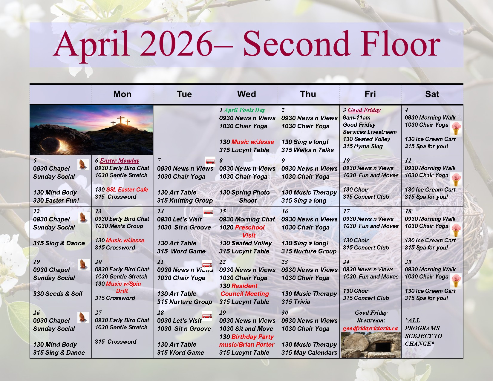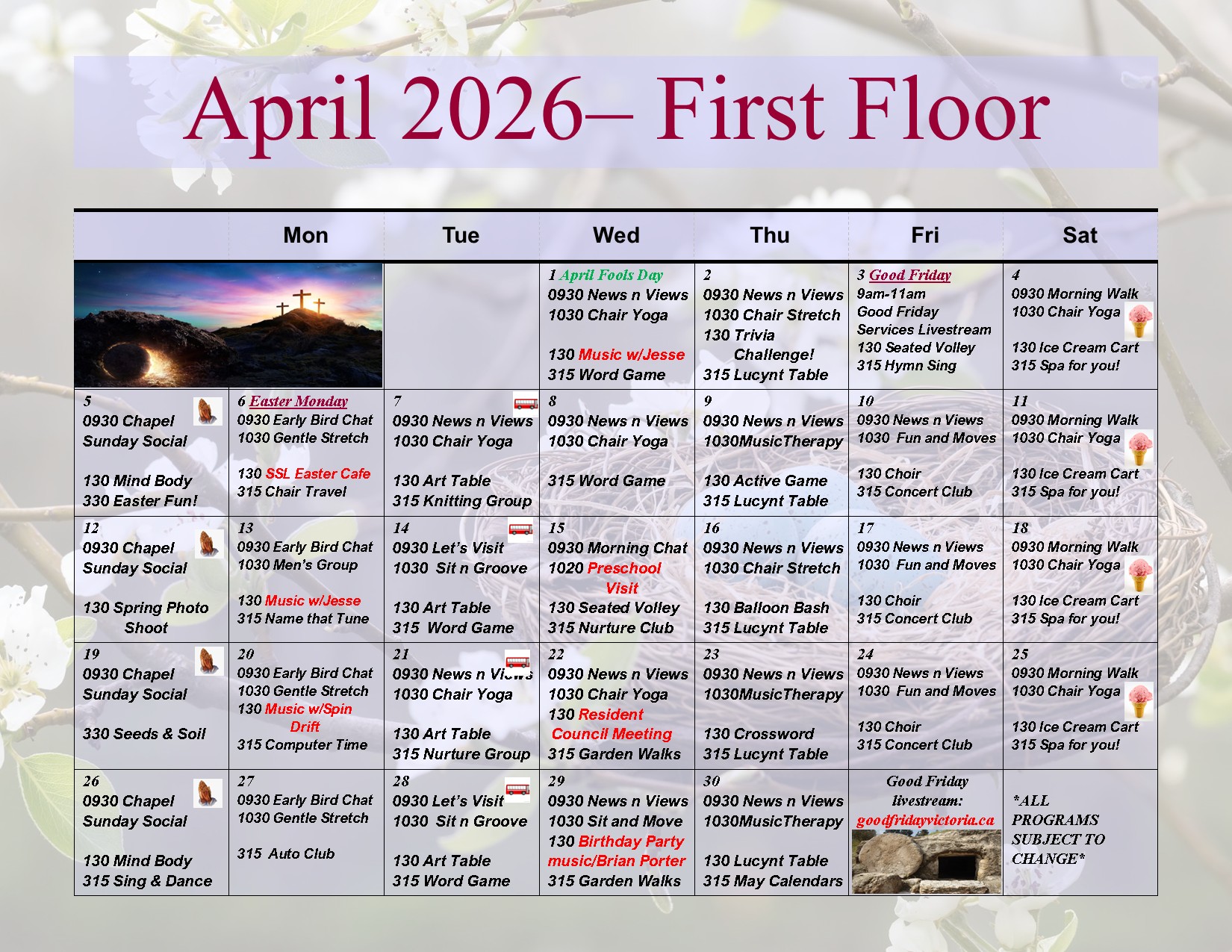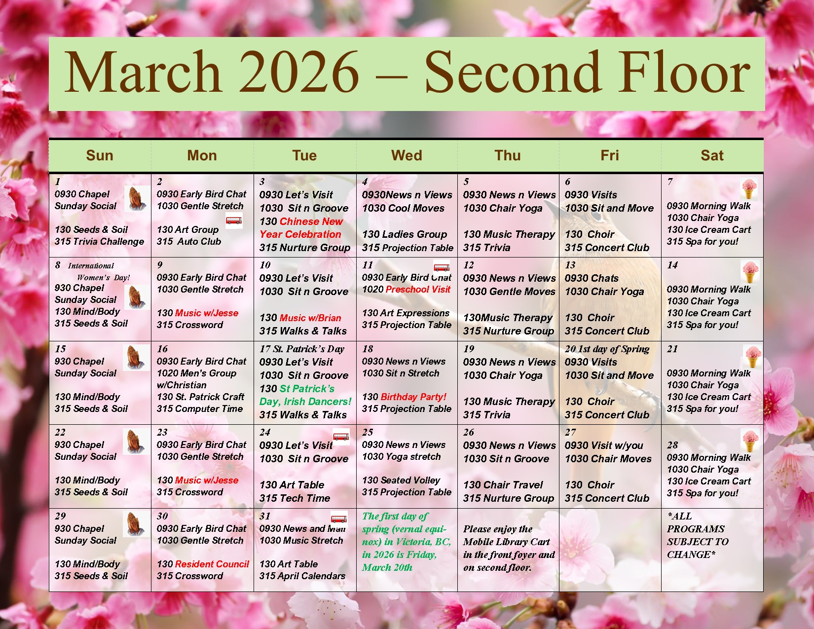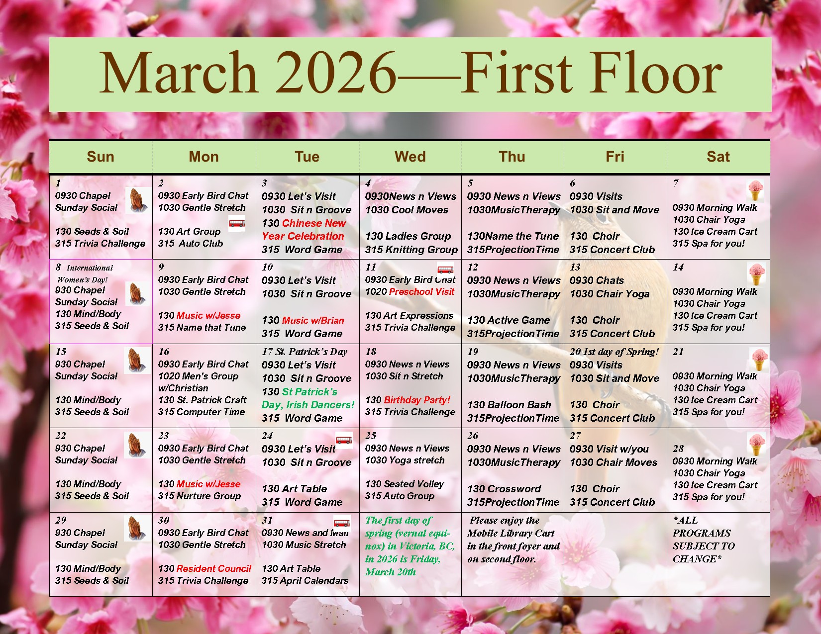 Planned activities to keep residents engaged, active and connected. Explore the various programs and events being held.